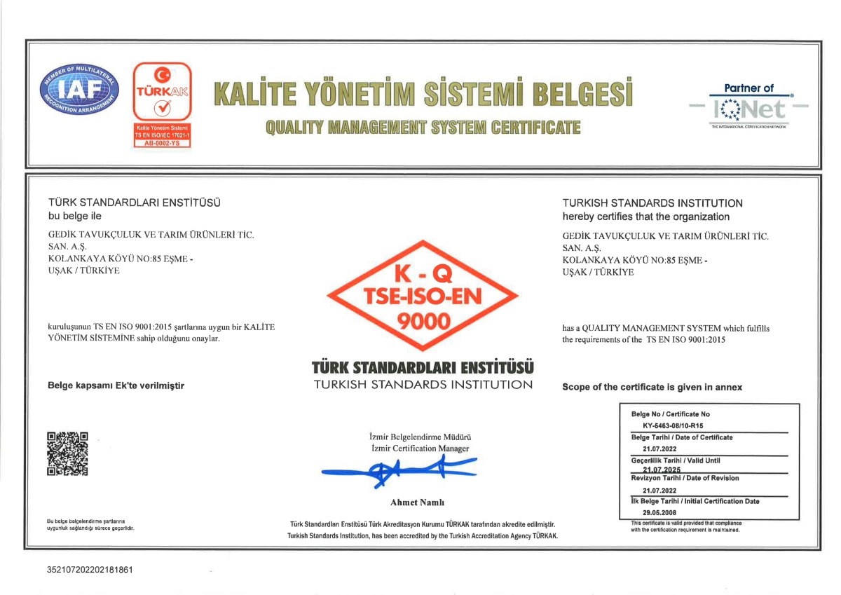 Türk Standartdları Enstitüsü Kalite Yönetim Belgesi
