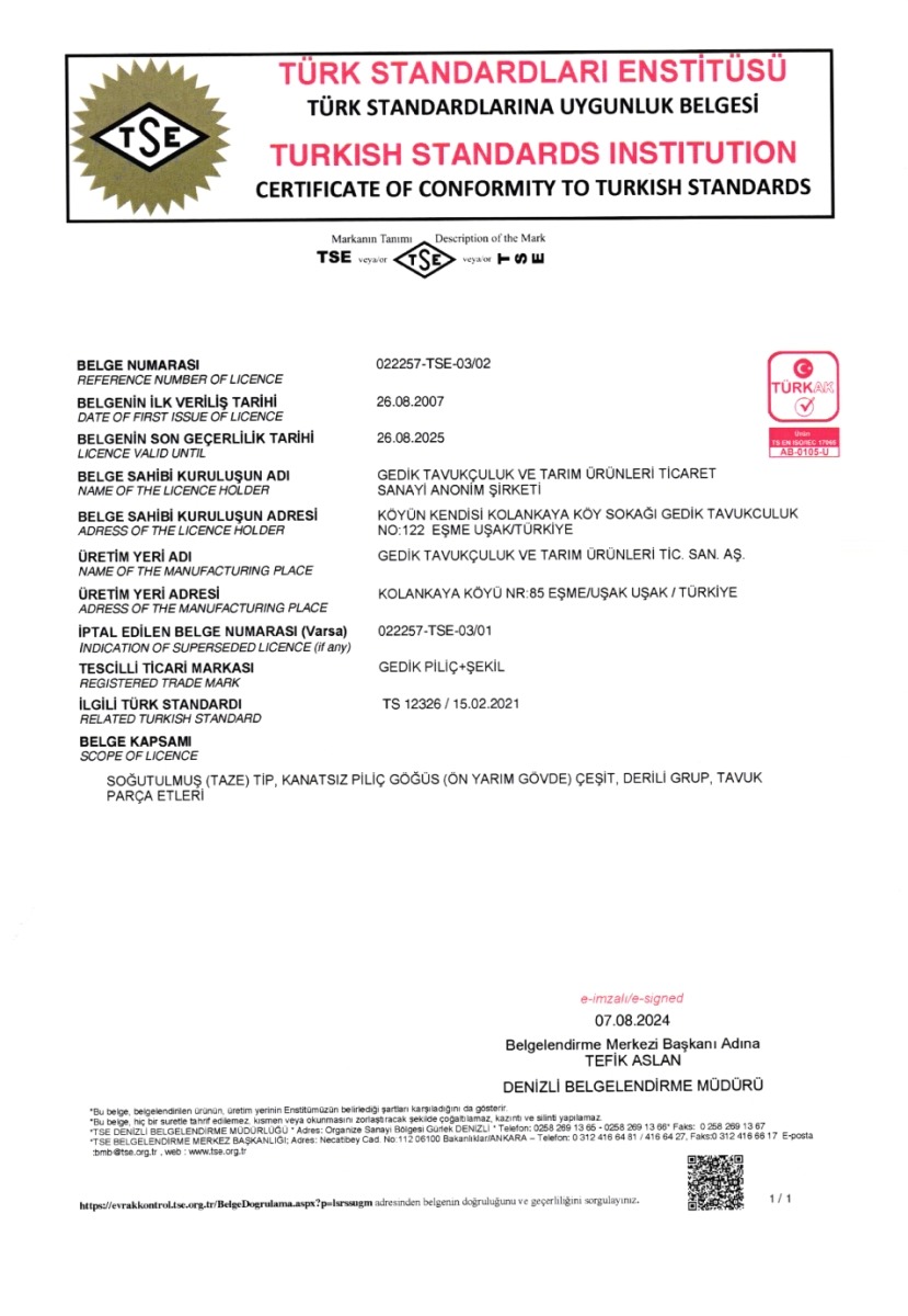 Türk Standartdları Enstitüsü Uygunluk Belgesi